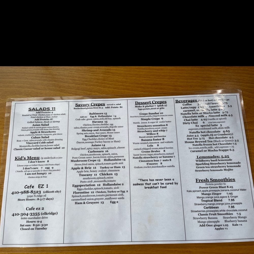 Cafe EZ - Ellicott City Menu (Update 2025)